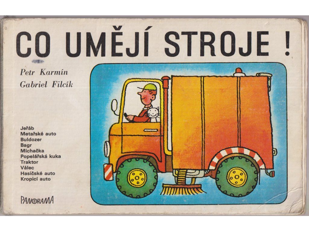 Veselé veršování o strojích jako jeřáb, metařské auto, buldozer, bagr, míchačka, popelářská kuka, traktor, válec, hasičské auto a kropicí auto.
