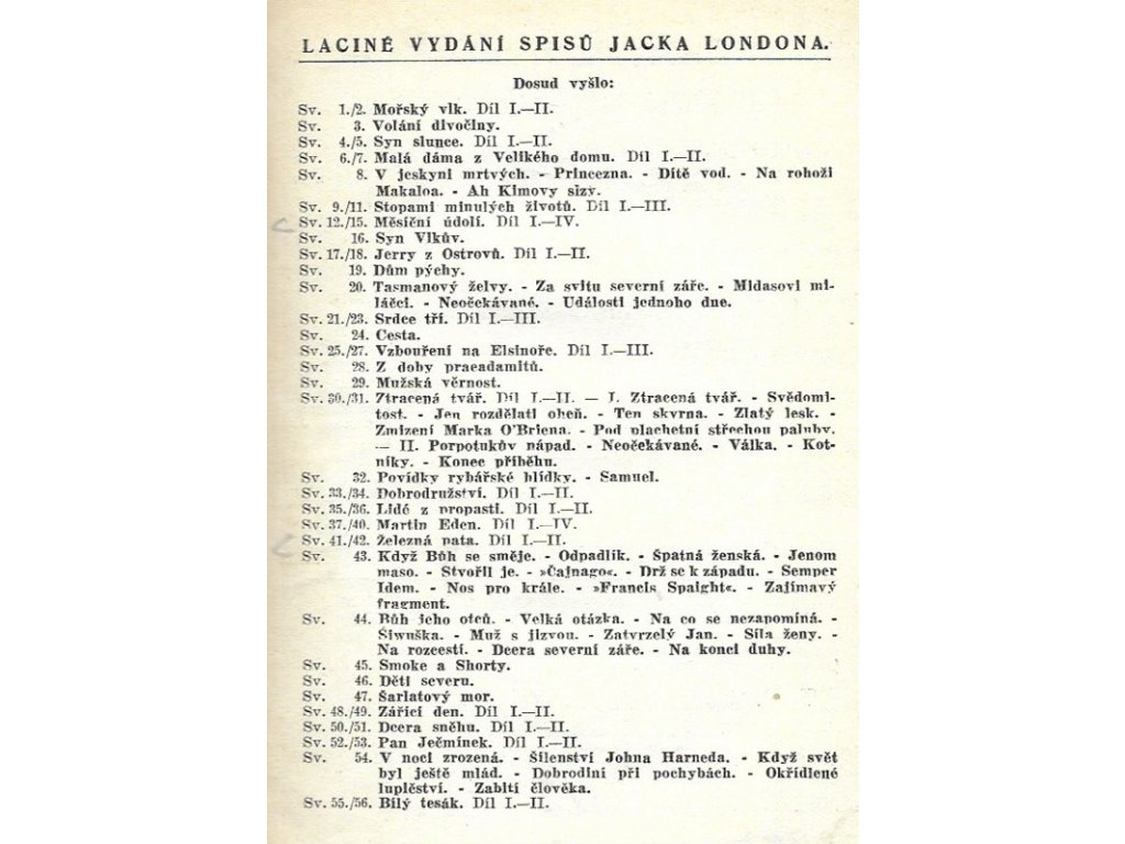 | Edice, série: | Laciné vydání spisů Jacka Londona |
