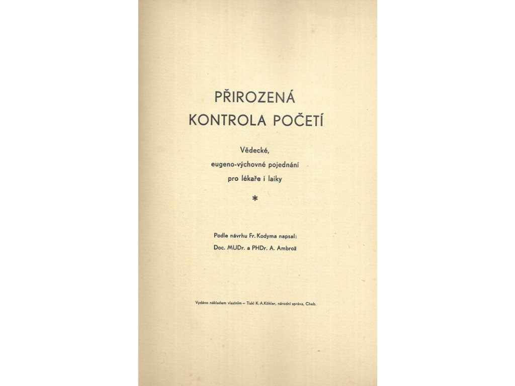 Přirozená kontrola početí : Vědecké, eugeno-výchovné pojednání pro lékaře i laiky