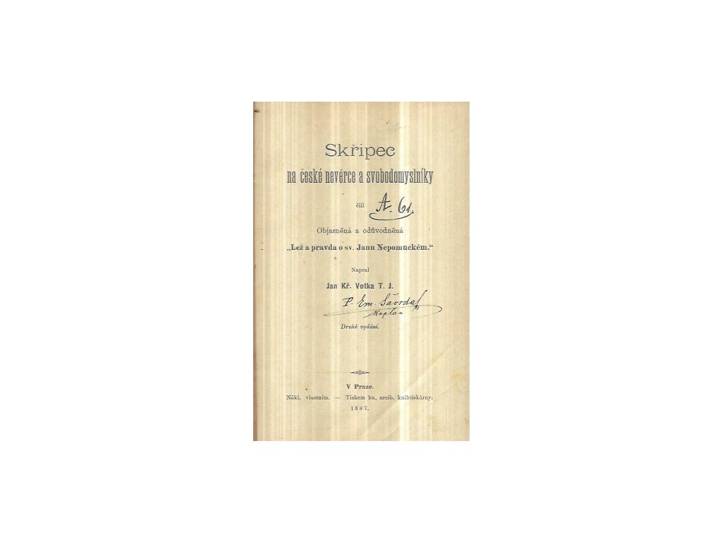 Skřipec na české nevěrce a svobodomyslníky, čili, Objasněná a odůvodněná "Lež a pravda o sv. Janu Nepomuckém"